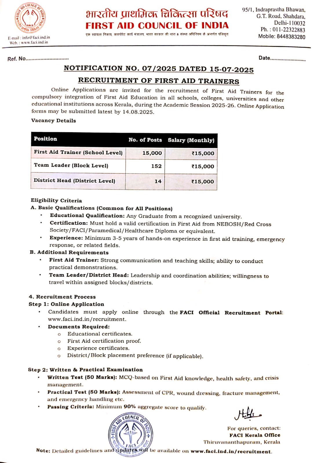 First Aid Council of India (FACI) is an autonomous body, which works to promote First Aid treatment in India. To achieve this aim FACI incorporate different types of teaching modules in its various programs such as education, training, awareness programs and providing helping aids to needy.