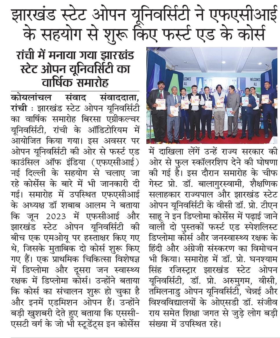 First Aid Council of India (FACI) is an autonomous body, which works to promote First Aid treatment in India. To achieve this aim FACI incorporate different types of teaching modules in its various programs such as education, training, awareness programs and providing helping aids to needy.